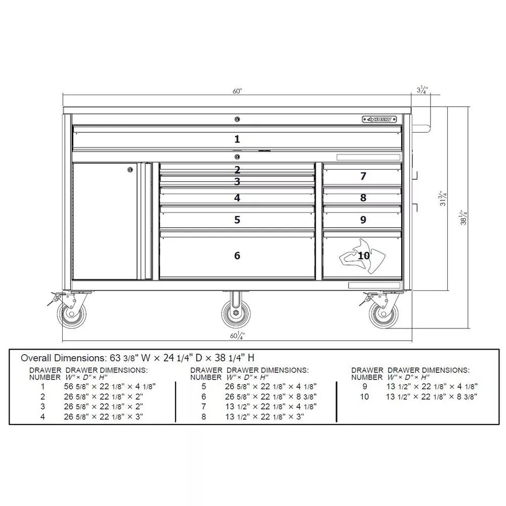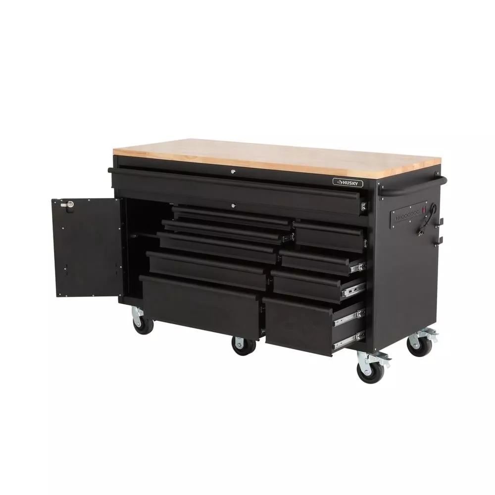 HEAVY-DUTY 60 IN. W 10-DRAWER, DEEP TOOL CHEST MOBILE WORKBENCH IN MATTE BLACK