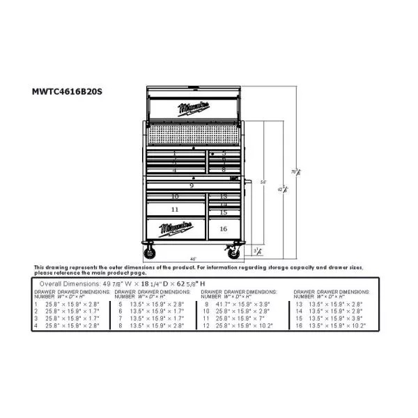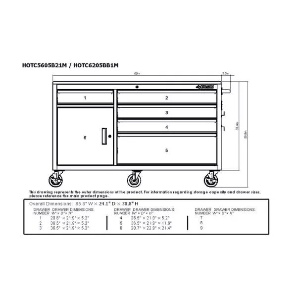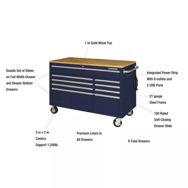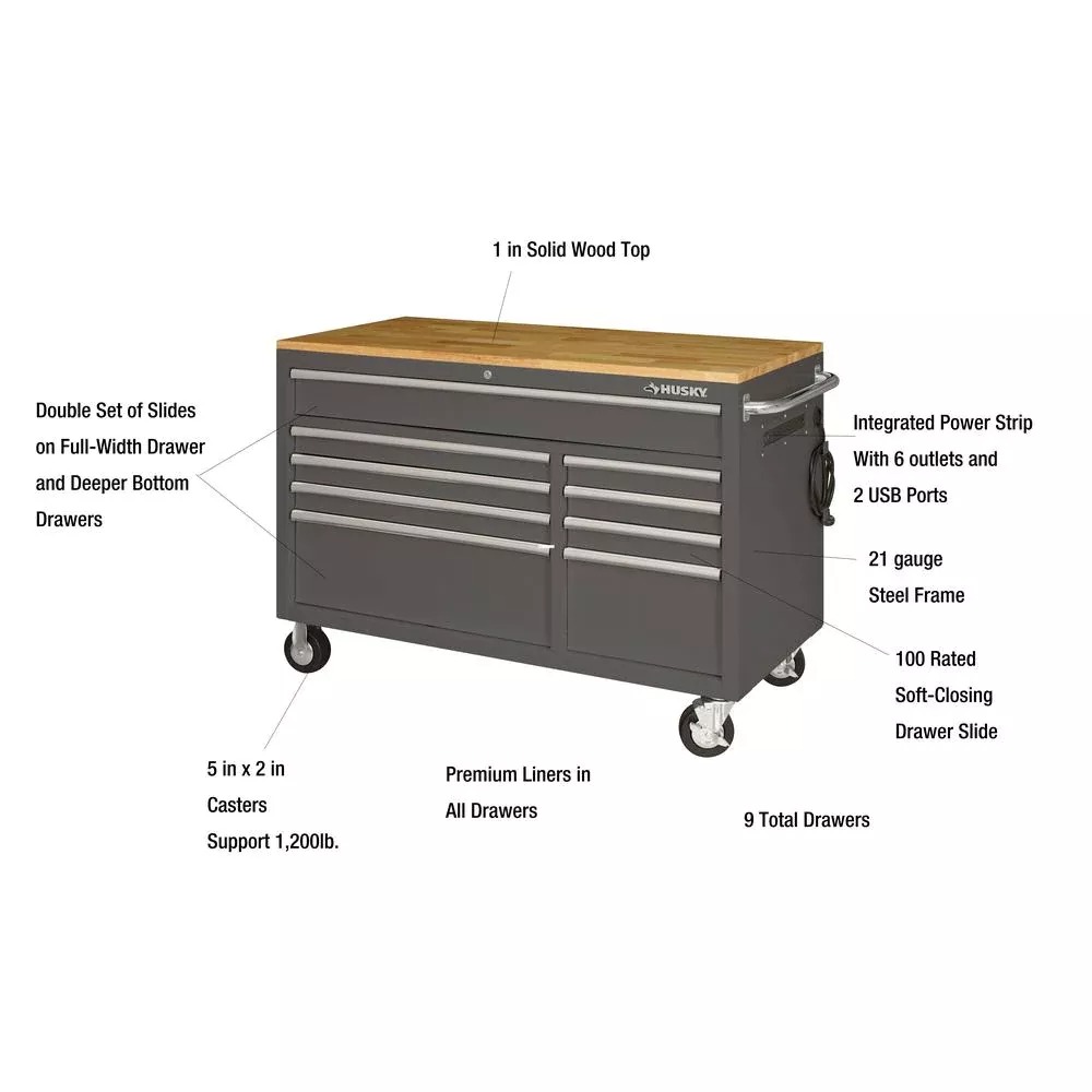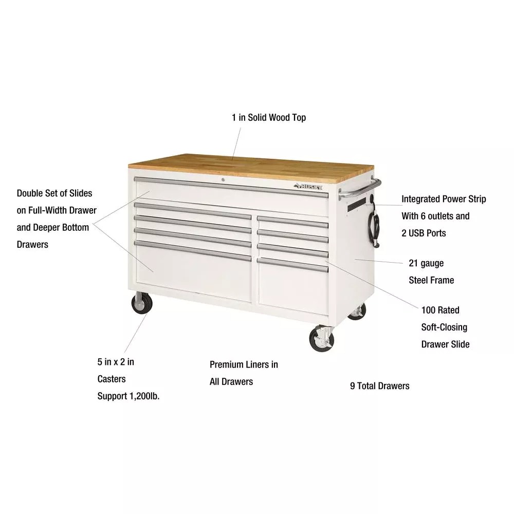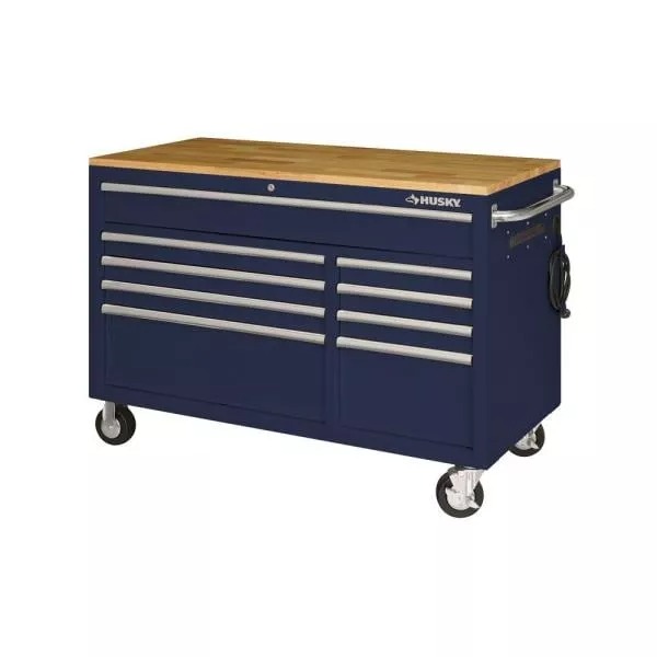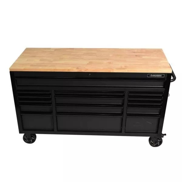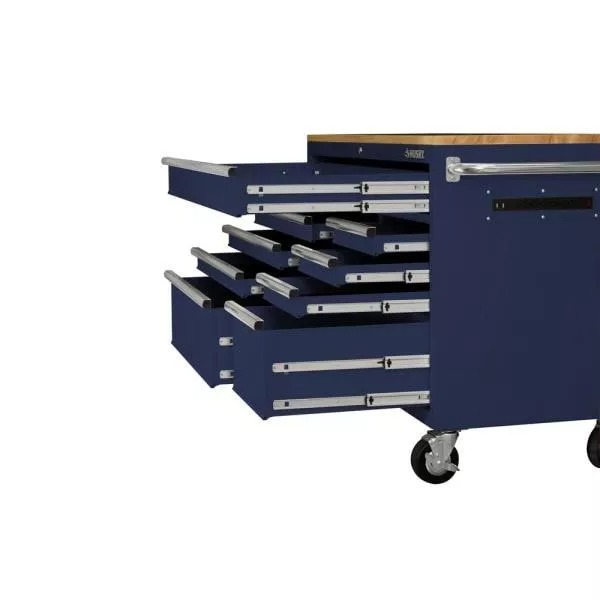 61 IN. W X 23 IN. D HEAVY-DUTY 15-DRAWER MOBILE WORKBENCH WITH SOLID WOOD TOP