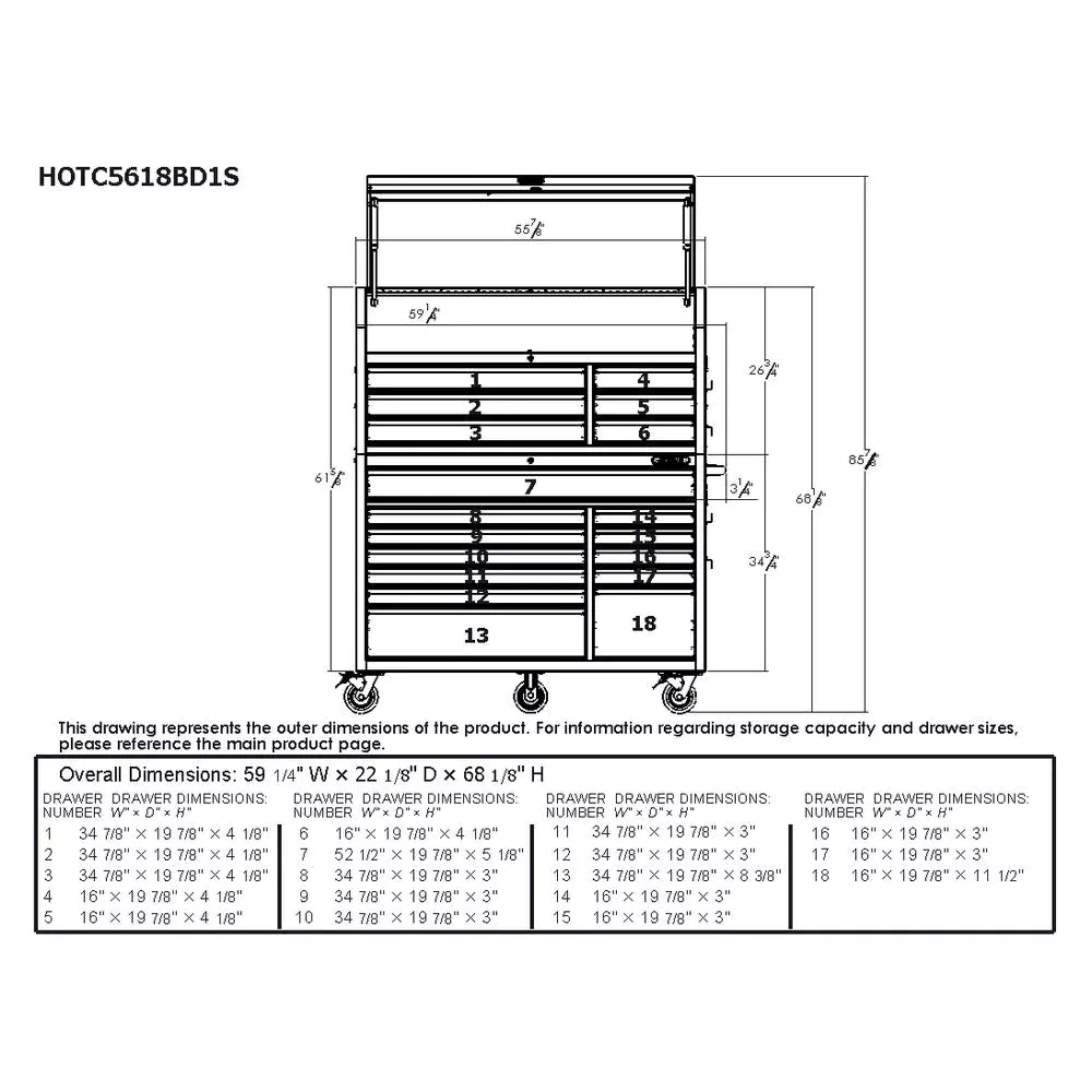 61 IN. W 18-DRAWER COMBINATION TOOL CHEST AND ROLLING CABINET SET IN GLOSS BLACK
